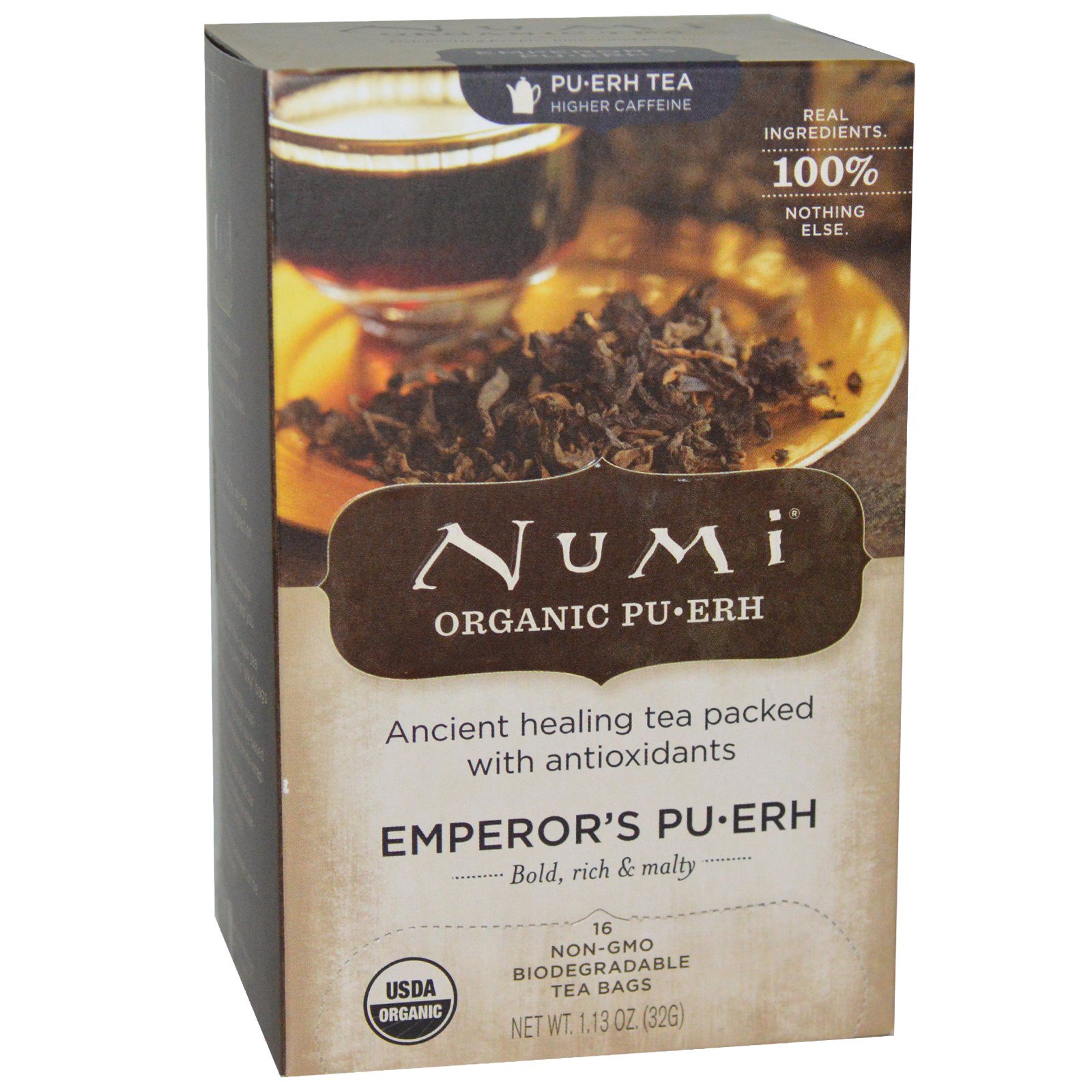 Numi Tea, Органический императорский чай Пу-Эр, 16 чайных пакетиков