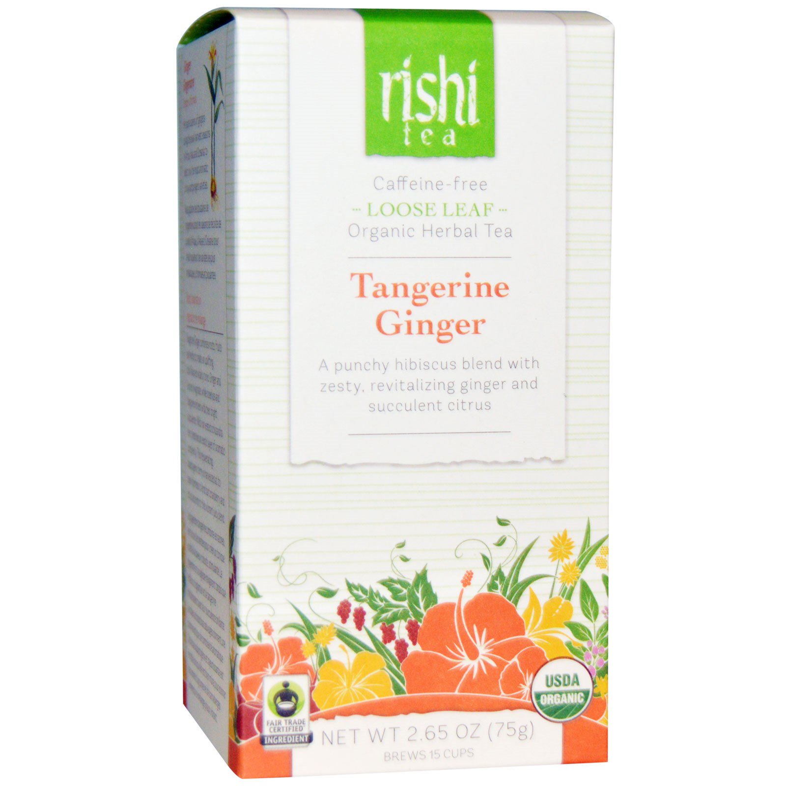 Rishi Tea, Органический травяной чай россыпью, мандарин и имбирь, без кофеина, 2,65 унции (75 г)