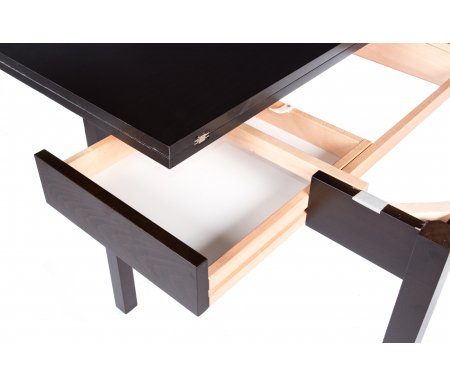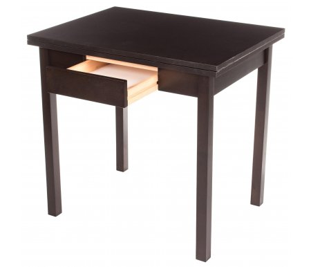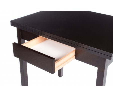 Стол может увеличиваться в длину в 2 раза (с 60 см до 120 см). Длина - 60, см; Длина в разложенном виде - 120, см; Ширина - 80, см; Высота - 76, см; Материал каркаса - массив бука; Материал столешницы - шпон, МДФ; Цвет - dark walnut (венге) / dark walnut (венге); Механизм трансформации - раскладной; Наличие колес - нет; Наличие ящика - с ящиком; Вес - 24,2, кг; Объем - 0,09, куб. м; Производитель - Мебель Малайзии; Гарантия - 12, мес;