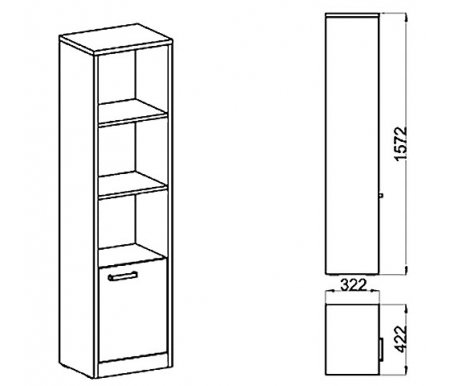 Производитель - Мебель России; Ширина - 42,2, см; Глубина - 32,2, см; Высота - 157,2, см; Стиль - современный; Направление угла - без угла; Материал каркаса - ЛДСП; Вес - 32,82, кг; Объем - 0,06, куб. м;