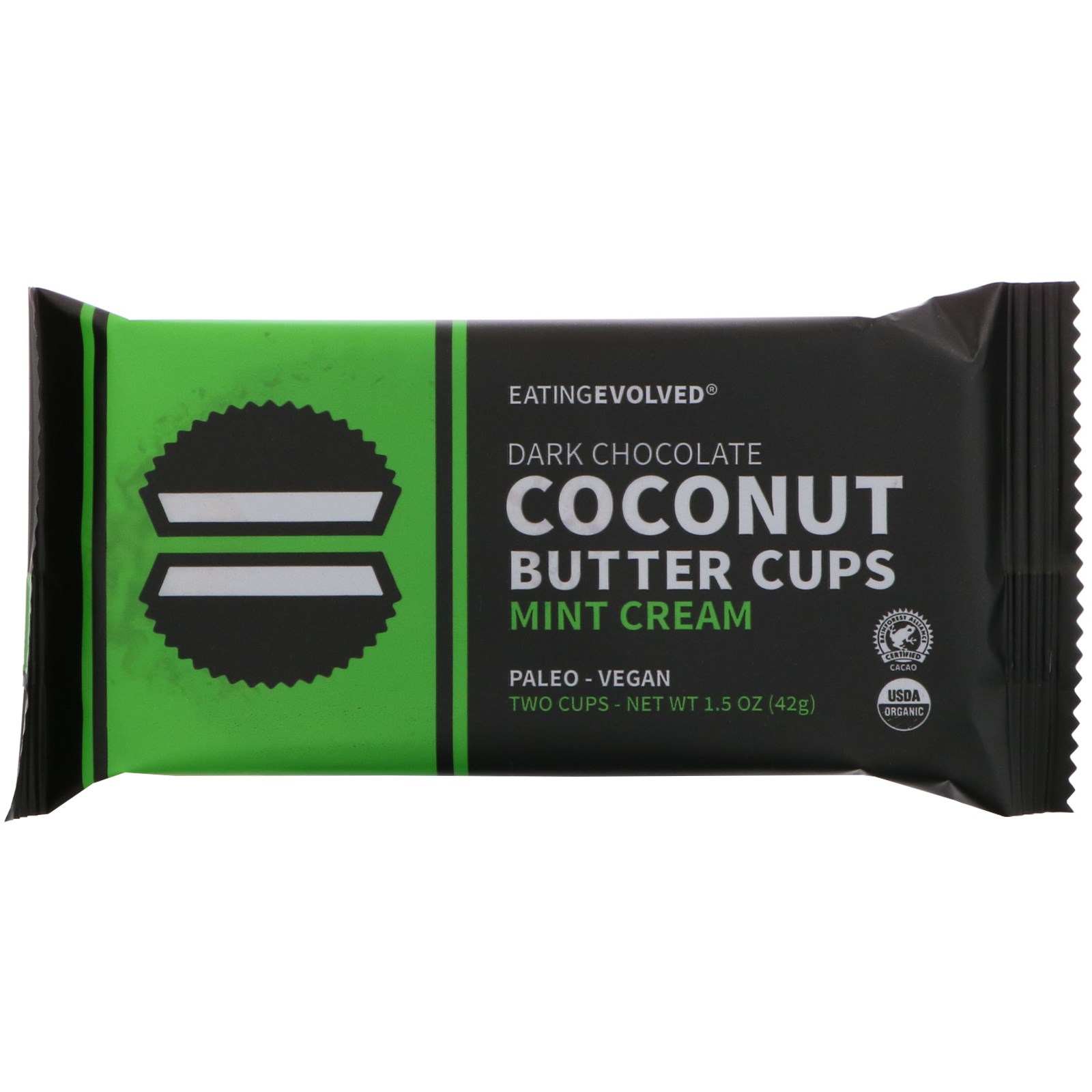 Eating Evolved, Темный шоколад, Рожки с кокосовым маслом, Мятный крем, Два рожка, 1,5 унции (42 г)