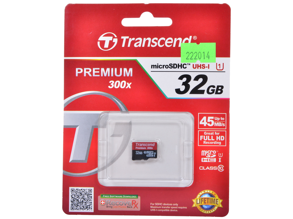 MicroSDHC Transcend 32GB Class 4 + Адаптер (TS32GUSDHC4)