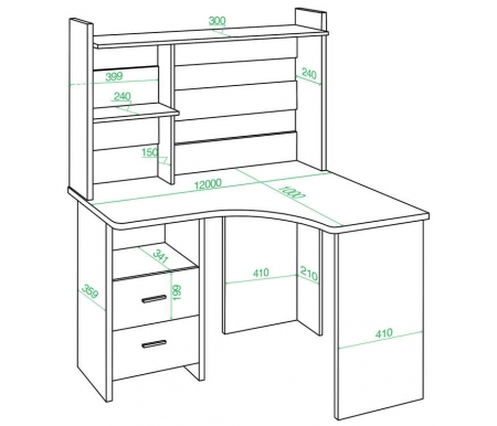 Длина - 120, см; Ширина - 100, см; Высота - 152, см; Направление угла - правый; Цвет - нельсон / белый; Материал столешницы - ЛДСП; Материал каркаса - ЛДСП; Тип поверхности - текстурная; Ящики - в комплекте; Полка под клавиатуру - не предусмотрена; Надстройка - в комплекте; Шкаф - не предусмотрен; Подставка для системного блока - приобретается отдельно; Стеллаж - не предусмотрен; Тумба - в комплекте; Колеса - не предусмотрены; Полки - в комплекте; Страна - Россия; Гарантия - 12, мес;