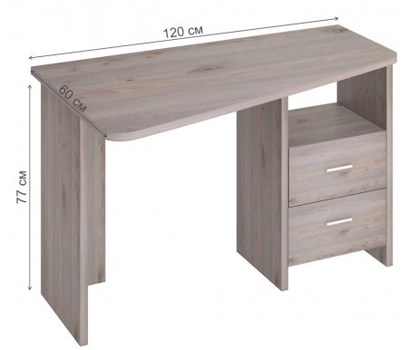Длина - 120, см; Ширина - 60, см; Высота - 77, см; Направление угла - левый; Цвет - нельсон; Материал столешницы - ЛДСП; Материал каркаса - ЛДСП; Тип поверхности - текстурная; Ящики - в комплекте; Полка под клавиатуру - не предусмотрена; Надстройка - не предусмотрена; Шкаф - не предусмотрен; Подставка для системного блока - приобретается отдельно; Стеллаж - не предусмотрен; Тумба - в комплекте; Колеса - не предусмотрены; Полки - не предусмотрены; Страна - Россия; Гарантия - 12, мес;