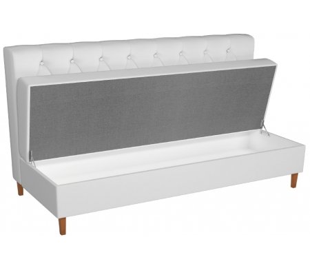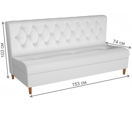 Ширина - 153, см; Глубина - 74, см; Высота (габаритная) - 103, см; Вес - 60, кг; Объем - 0,8, куб.м; Цвет - белый; Материал каркаса - без каркаса; Материал обивки - экокожа; Материал ножек - дерево; Стиль - классический; Угол - прямой; Страна - Россия; Направление угла - без угла; Наличие спального места - нет; Количество мест - 3; Раскладывание - нет; Наличие ящика - с ящиком; Гарантия - 12, мес;