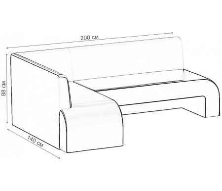 Ширина левой стороны - 140, см; Ширина правой стороны - 200, см; Высота (габаритная) - 88, см; Вес - 70, кг; Объем - 1,5, куб.м; Цвет - бежевый / белый; Материал каркаса - без каркаса; Материал обивки - экокожа; Материал ножек - без ножек; Стиль - современный; Угол - угловой; Страна - Россия; Направление угла - левый; Мягкость сиденья - мягкое; Наличие спального места - нет; Количество мест - 5; Раскладывание - нет; Наличие ящика - без ящика; Гарантия - 12, мес;