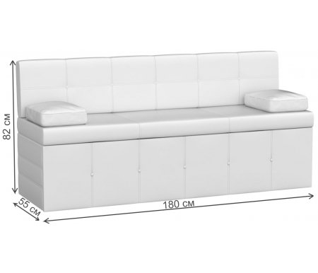Ширина - 180, см; Глубина - 55, см; Высота (габаритная) - 82, см; Вес - 70, кг; Объем - 1,3, куб.м; Цвет - белый; Материал каркаса - без каркаса; Материал обивки - экокожа; Материал ножек - без ножек; Стиль - современный; Угол - прямой; Страна - Россия; Направление угла - без угла; Наличие спального места - да; Количество мест - 3; Раскладывание - да; Наличие ящика - без ящика; Гарантия - 12, мес;