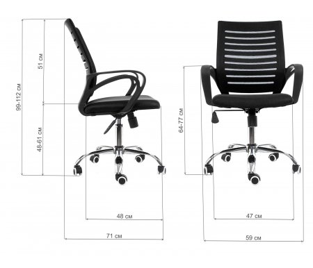 Компьютерное кресло Focus имеет прорезиненные колесики. Ширина кресла - 59, см; Глубина кресла - 71, см; Высота кресла - 99, см; Ширина сиденья - 47, см; Глубина сиденья - 48, см; Высота сиденья - 48, см; Высота сиденья максимальная - 61, см; Высота подлокотников - 64 - 77, см; Цвет - черный; Материал кресла - сетка; Материал крестовины - металл; Сиденье - мягкое; Материал колёс - прорезиненный пластик; Наличие подголовника - нет; Наличие подлокотников - да; Наличие колес - да; Максимальная нагрузка на газпатрон - до 100 кг; Поддержка поясницы - нет; Регулировка глубины сиденья - нет; Регулируемая высота - регулируемая высота; Вес - 10,3, кг; Подставка для ног - нет; Механизм качания - да; Тип механизма - топ-ган; Объем - 0,075, куб. м; Гарантия - 12, мес; Страна - Китай;