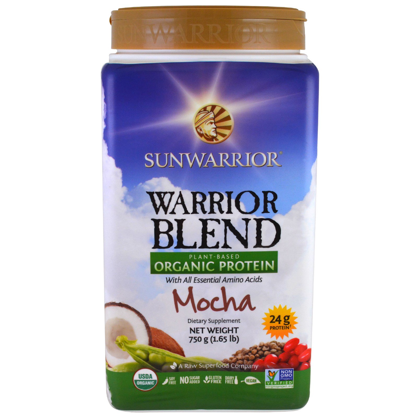 Sunwarrior, Warrior Blend, растительный органический протеин, мокко, 1,65 фунта (750 г)