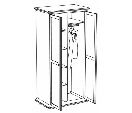 Ширина - 95,8, см; Глубина - 60,7, см; Высота - 201,1, см; Тип дверей - распашные; Угол - прямой; Материал каркаса - ЛДСП; Материал фасада - ЛДСП; Тип поверхности - текстурная; Количество дверей - 2; Наличие ящиков - без ящиков; Наличие полок - да; Наличие подсветки - приобретается отдельно; Штанга для вешалки - приобретается отдельно; Наличие зеркала на фасаде - не предусмотрено; Страна - Россия; Гарантия - 12, мес;