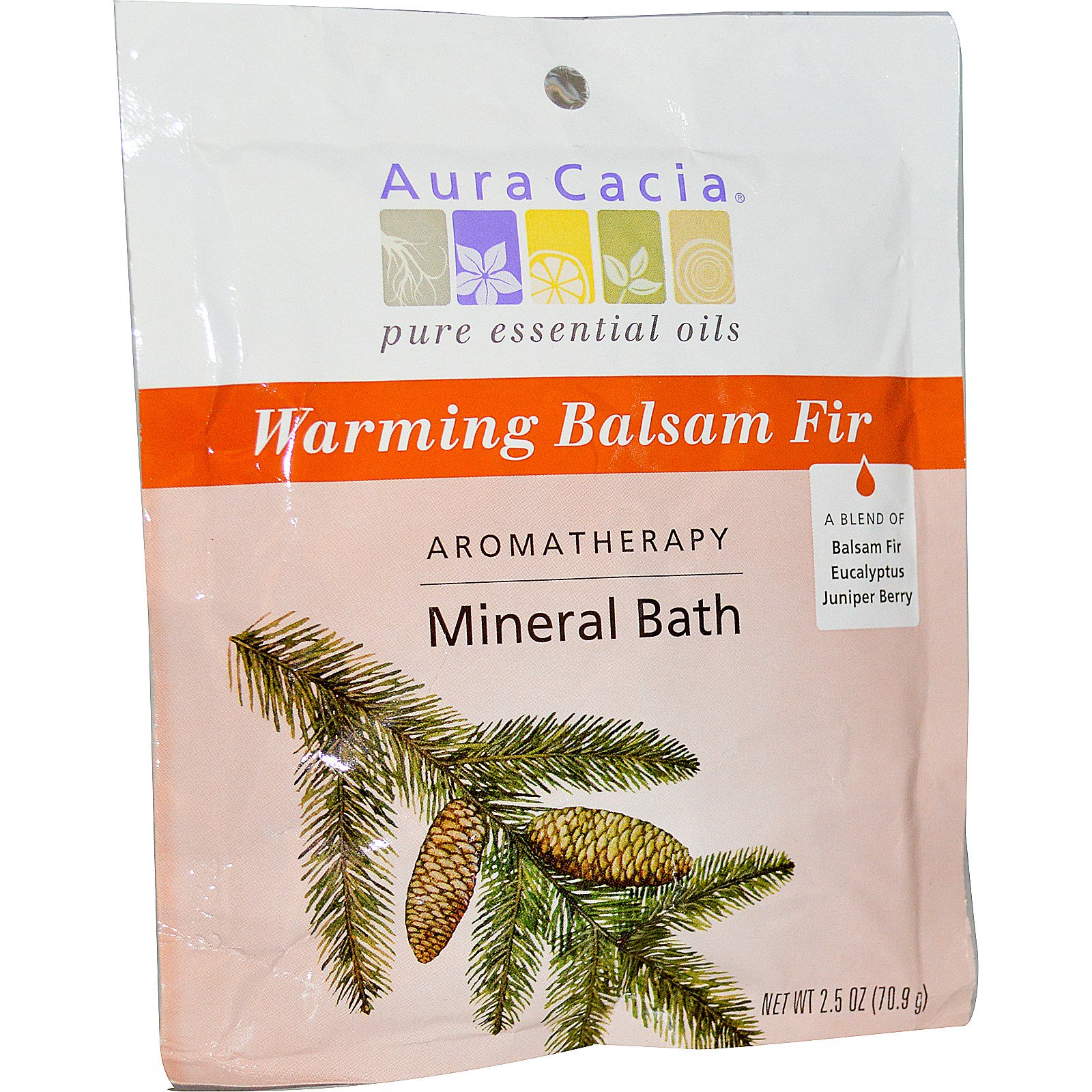 Aura Cacia, Ароматерапевтическое минеральное средство для ванны, согревающая бальзамическая пихта, 2,5 унции (70,9 г)