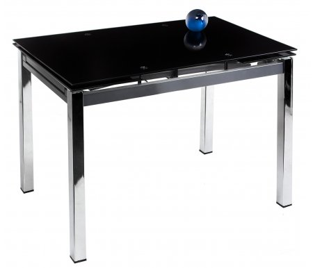 Длина - 134, см; Длина в разложенном виде - 174, см; Ширина - 75, см; Высота - 75, см; Материал каркаса - металл, ЛДСП; Материал столешницы - стекло, ЛДСП; Цвет - дуб швейцарский / стекло черное; Механизм трансформации - раскладной; Тип поверхности - стеклянная; Наличие колес - нет; Наличие ящика - без ящика; Производитель - Мебель России;