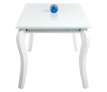 Длина - 120, см; Длина в разложенном виде - 180, см; Ширина - 80, см; Высота - 75, см; Материал каркаса - массив гевеи; Материал столешницы - стекло; Цвет - белый лак / супер белый; Механизм трансформации - раздвижной; Наличие колес - нет; Наличие ящика - без ящика; Вес - 57, кг; Объем - 0,188, куб. м; Производитель - Мебель Китая; Гарантия - 12, мес;