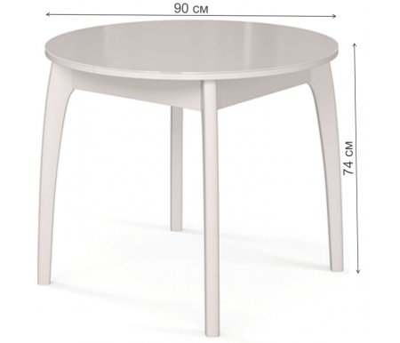 Длина - 90, см; Длина максимальная - 125, см; Ширина - 90, см; Высота - 74, см; Материал каркаса - массив бука; Материал столешницы - стекло, ЛДСП; Цвет - круглый белый / стекло белое; Механизм трансформации - раскладной; Тип поверхности - стеклянная, гладкая; Наличие колес - нет; Наличие ящика - без ящика; Вес - 34, кг; Объем - 0,16, куб. м; Производитель - Мебель России;