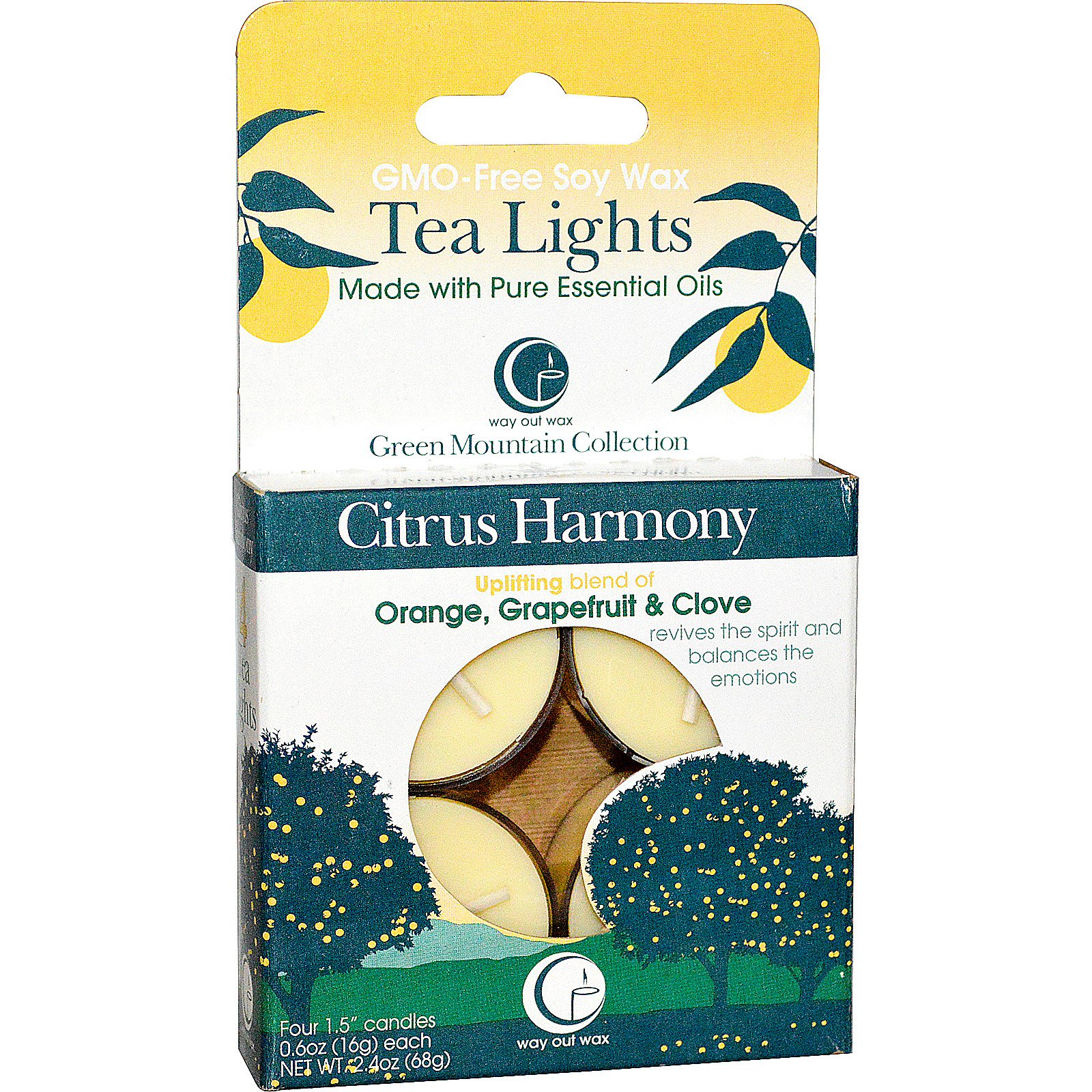 Way Out Wax, Чайные свечи, цитрусовая гармония, 4 свечи по 0.6 унций (16 г) каждая