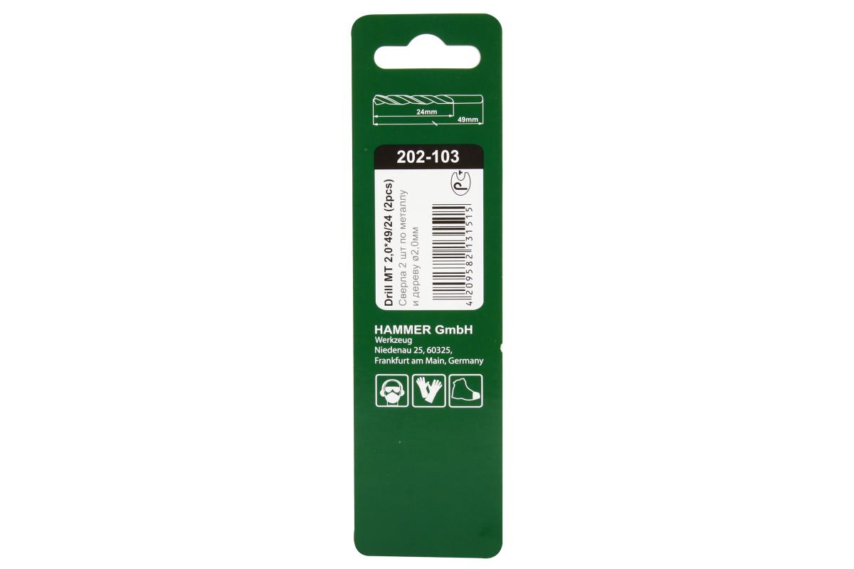 Сверло по металлу Hammer Dr mt 2,0мм*49/24мм (2шт.)