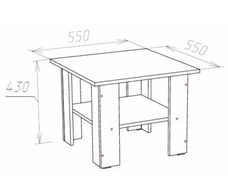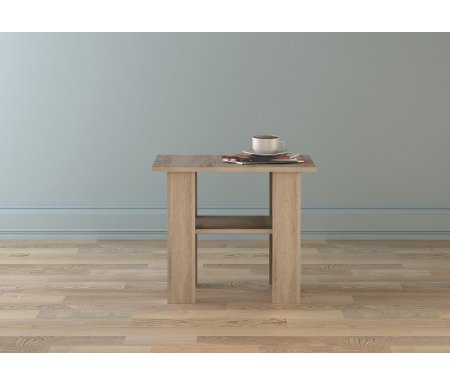 Длина - 55, см; Ширина - 55, см; Высота - 43, см; Материал каркаса - ЛДСП; Материал столешницы - ЛДСП; Цвет - дуб сонома; Механизм трансформации - без механизма; Наличие колес - нет; Наличие ящика - без ящика; Вес - 9, кг; Объем - 0,02, куб. м; Страна - Россия; Гарантия - 24, мес;